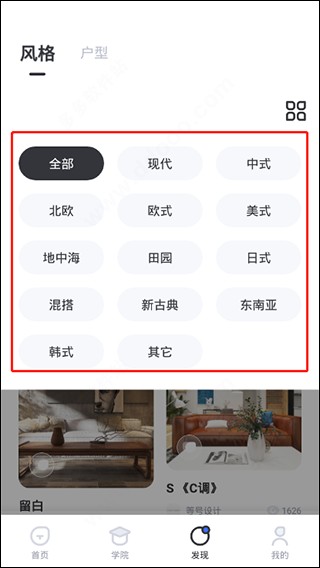 4、另外,在“发现”模板中可看到各式各样的装修设计案例,从而更好的开拓你的眼界。